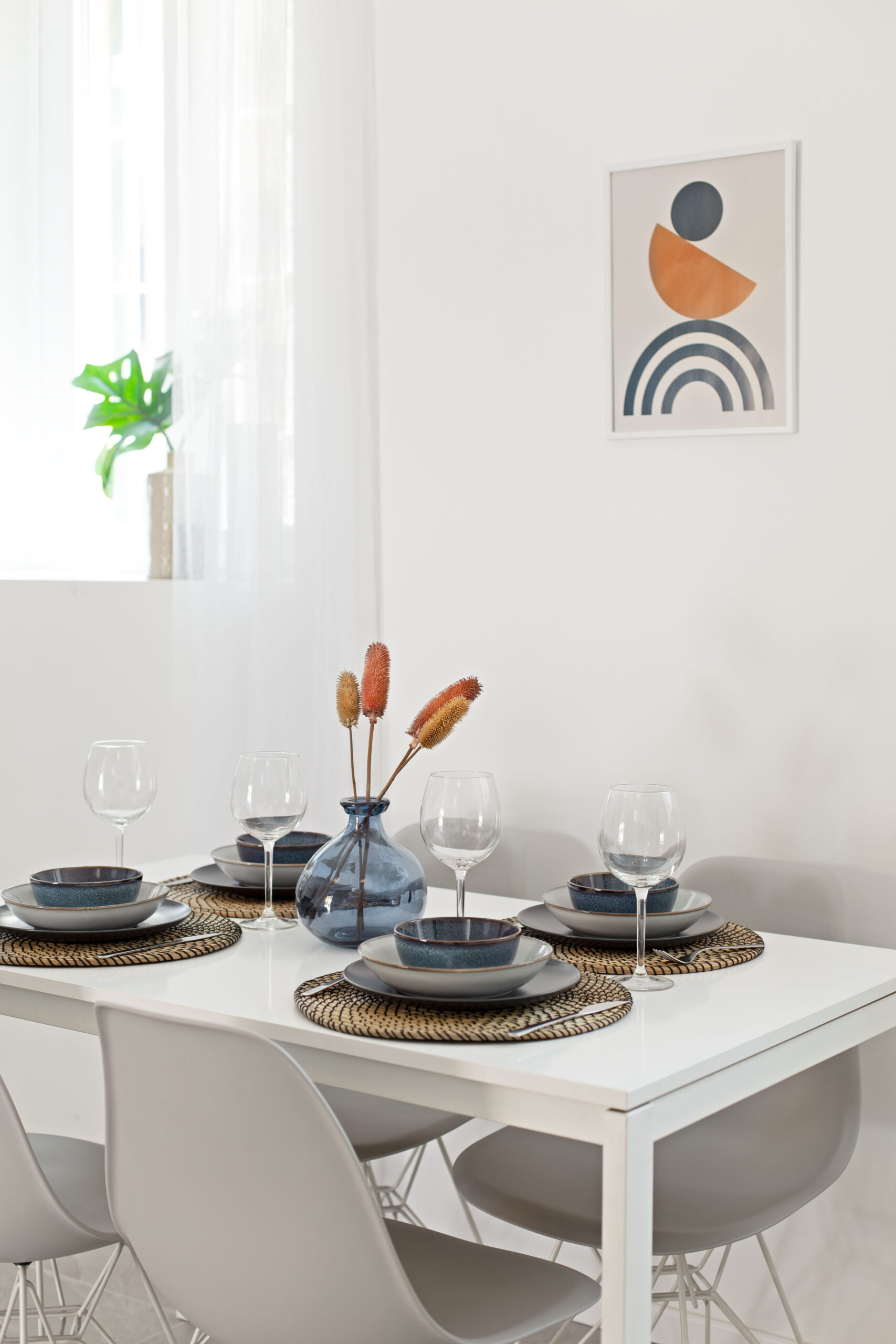 Si tratta del servizio di home staging completo. Il mio intervento segue tutti gli step: sopralluogo, creazione progetto, l’organizzazione dell’allestimento e servizio fotografico fino al disallestimento. Arredi, complementi e tessili rimangono nell’immobile fino a proposta accettata o termini contrattuali.